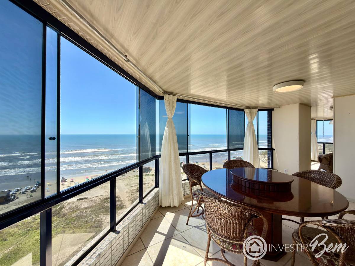 APARTAMENTO A VENDA NA BEIRA MAR DE CAPÃO DA CANOA-RS VISTA ETERNA PARA O MAR, com 278m² (2 apartamentos integrados em matrícula única), composto de 4 dormitórios sendo 2 amplas suítes, living com lareira e 3 ambientes muito bem definidos, 3 banheiros sociais com ventilação e iluminação direta, cozinha completa e espaçosa com vista para o mar, churrasqueira na sacada vista para o mar, Excelente área de serviço, 3 vagas de garagem privativas, Depósito térreo e escriturado, Posição solar Leste/Norte. Marque sua visita com um de nossos corretores.