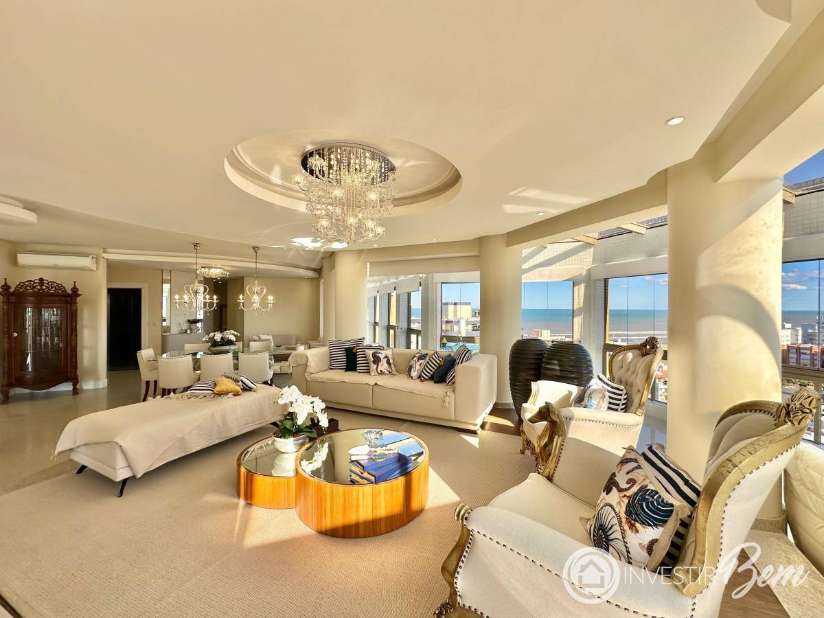 Cobertura espetacular com 4 suítes, sendo uma suíte master com banheira e amplo sacadão com vista deslumbrante para o mar. Totalmente mobiliada, decorada e climatizada, o imóvel conta com 459, 61m² de puro conforto e sofisticação, além de três boxes individuais de garagem. O living, em cinco ambientes integrados, possui uma ampla sacada que oferece vista 360° da cidade, da lagoa e do mar. A cozinha é espaçosa e funcional, e o imóvel ainda conta com um salão de festas privativo completo, com churrasqueira, adega e banheiro auxiliar. Com quatro posições solares — leste, norte, oeste e sul —, o apartamento é iluminado durante todo o dia. Um imóvel de alto padrão, totalmente repaginado, que reúne exclusividade, conforto e uma vista simplesmente inesquecível.
