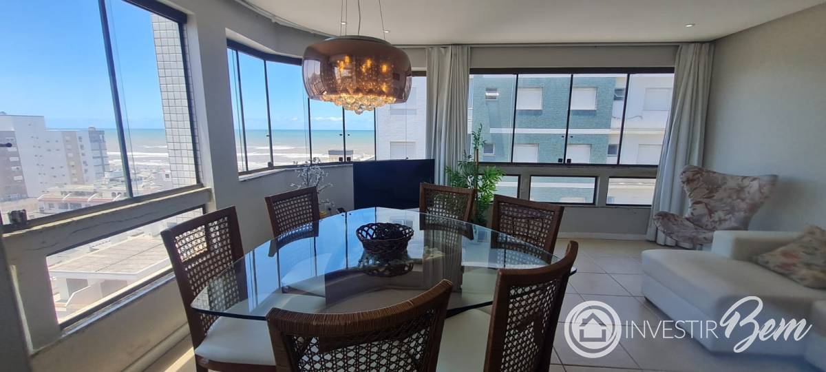 APARTAMENTO EM CAPÃO DA CANOA, CENTRO-RS. Composto de 2 quartos, sendo uma suíte, banho social, living dois ambientes, Vista eterna mar. Todo climatizado. Mobiliado, posição solar Leste/Oeste/Sul cozinha americana, andar alto, churrasqueira, prédio com elevador, uma quadra da beira mar, localização bem no centro, perto da praça dos camelos, apartamento amplo com 104m², hall de entrada moderno, elevador, zelador o ano todo, fachada revestida em plaquetas.