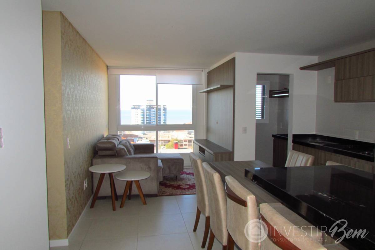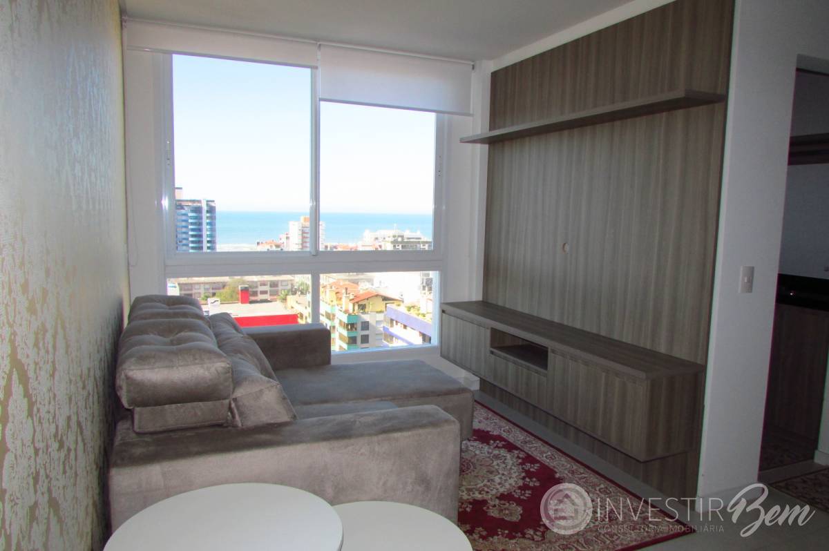 VISTA MAR, ÚLTIMO ANDAR, CENTRO DA CIDADE! Apartamento composto por 01 dormitório, banho social, living 02 ambientes com sacada integrada, cozinha americana com churrasqueira, área de serviço, totalmente mobiliado, esquadrias chão teto, 12° com uma vista de tirar o fôlego e box de estacionamento. Edifício novo, no centro da cidade, hall de entrada decorado, 02 elevadores, portões eletrônicos.