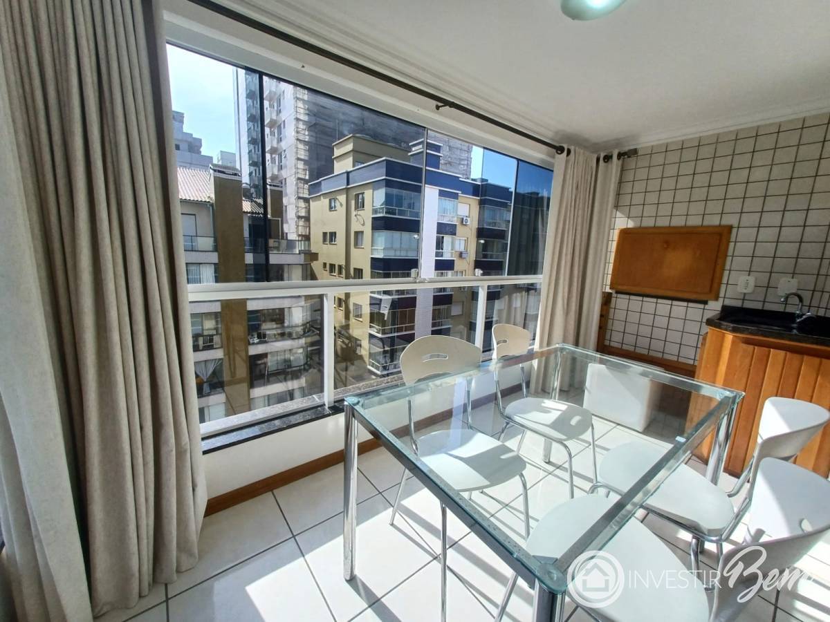 Apartamento amplo e muito bem distribuído de frente, composto por 2 dormitórios, sendo 1 suíte, totalmente mobiliado e equipado, pronto para uso, living integrando ambientes, sala de estar junto com sala de jantar, sacada integrada de frente com churrasqueira, cozinha estilo americana com bancada de apoio, área de serviço separada, ar split já instalado em todos os ambientes, banheiro social, andar alto, muito bem iluminado e ventilado naturalmente, junto com 1 box de fácil acesso. Edifício localizado na região do centro, ficando apenas a 3 quadras da praia e a 5 minutos caminhando até o centro da cidade, elevador e zeladoria permanente o ano inteiro.
