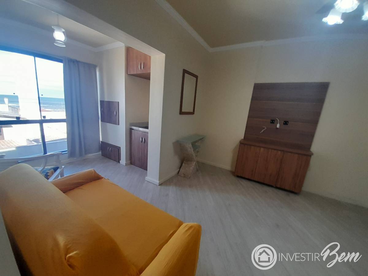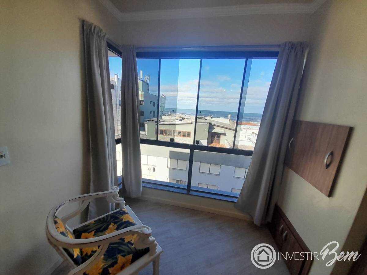 Amplo apartamento com sacada de frente Leste e bela vista para a cidade e para o mar, proporcionando ótima iluminação natural. Conta com churrasqueira e espaço gourmet, sala de estar e jantar integradas à cozinha, banheiro social e um dormitório com cama de casal e roupeiro sob medida. Está mobiliado e possui 38 m² de área privativa. Edifício com elevador, porteiro eletrônico e zelador, localizado no centro, próximo ao shopping, restaurantes, praças e à beira-mar. Excelente opção para veraneio ou locação de temporada. Solicite mais informações e agende sua visita.