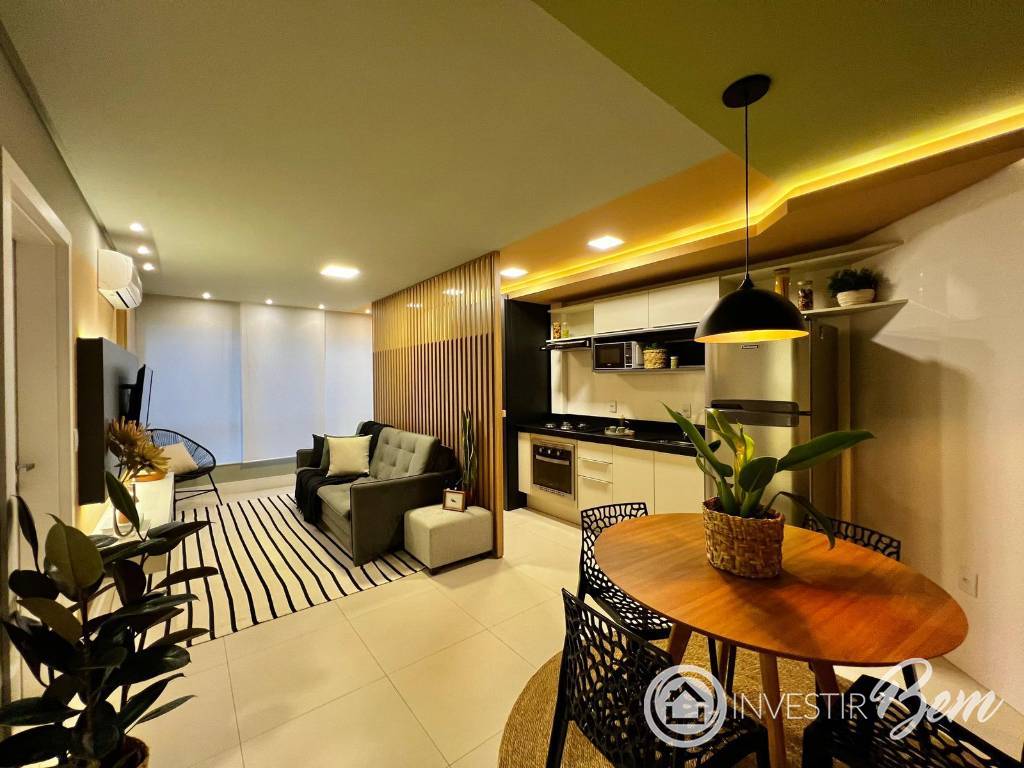 Apartamento à venda no Bairro Navegantes, finamente mobiliado e decorado! Apenas a 50m do mar, living amplo com sala de estar e jantar integradas, cozinha americana, churrasqueira, 1 dormitório, banheiro social e box de estacionamento de fácil acesso Apartamento em andar alto bem ventilado e iluminado. Edifício de alto padrão construtivo, com 2 elevadores, Hall de entrada decorado. Bairro Navegantes.
