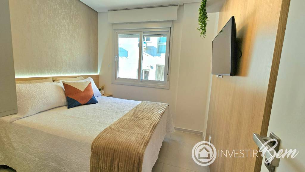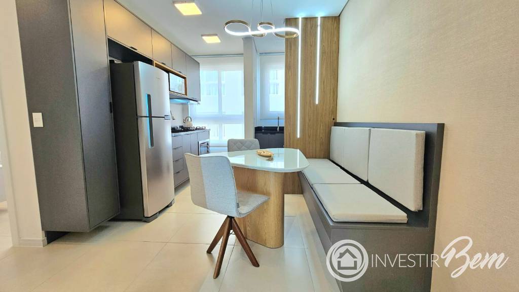 No bairro navegantes, este lindo apartamento composto por 2 dormitórios sendo uma suíte, banheiro social, sala de estar e jantar, cozinha estilo americana, área de serviço separada, finamente mobiliado e decorado, pronto para uso, em uma região ótima para você que busca agilidade de deslocamento, a poucas quadras do mar, perto de mercados, farmácias e dos melhores restaurantes da cidade. Prédio 100% revestido em plaquetas, zeladoria permanente, gás central, salão de festas, academia, piscina, gourmet junto a piscina. Não perca esta oportunidade, solicite maiores informações e agende uma visita com um de nossos corretores.