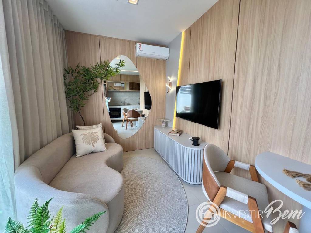 Apartamento super decorado, COM AMPLO TERRAÇO, com lazer completo no rooftop, no Bairro Navegantes! Apartamento 1 dormitório, living 2 ambientes, com AMPLO TERRAÇO LATERAL, cozinha americana, churrasqueira, banho social e 1 vaga na garagem. Alto padrão construtivo: piso porcelanato, esquadrias em PVC, climatizado e com esperas para água quente. Posição solar: Sul. Edifício com hall decorado, 2 elevadores, gás central, hidrômetro individual, porteiro eletrônico, monitoramento por câmeras, zeladoria permanente e área de lazer no rooftop com: - piscina e terraço - espaço gourmet com churrasqueira - salão de festas - academia - sala de jogos Localizado no Bairro Navegantes, próximo à Avenida Ubirajara (da Santinha), a poucos passos da região gastronômica da cidade, de mercados, farmácias, banco e a apenas 4 quadras da praia! Consulte condições para parcelamento direto. Chame no whats e agende uma visita!