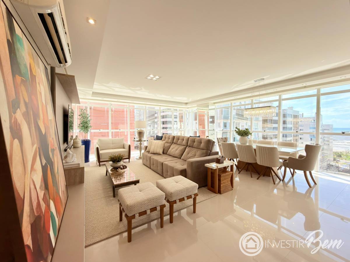 Sofisticação, espaço e uma vista privilegiada para o mar definem este belíssimo apartamento de 172, 80m².São 03 dormitórios, sendo 01 suíte, além de banho social e lavabo, oferecendo conforto e praticidade para toda a família. A sacada de frente com vista para o mar é um verdadeiro convite para apreciar o nascer do sol, já que a orientação solar Norte/Leste garante ambientes iluminados e agradáveis ao longo do dia. O imóvel está mobiliado e decorado, com acabamento de altíssimo padrão, pronto para morar e desfrutar de cada detalhe pensado com elegância e bom gosto. Conta ainda com 02 boxes de garagem, trazendo mais comodidade ao dia a dia. O edifício acompanha o mesmo nível de qualidade, com alto padrão construtivo, 02 elevadores, hall decorado, além de uma completa infraestrutura de lazer: piscina, salão de festas, sala de jogos e espaço fitness. Um imóvel exclusivo para quem busca conforto, requinte e uma vista encantadora para o mar.