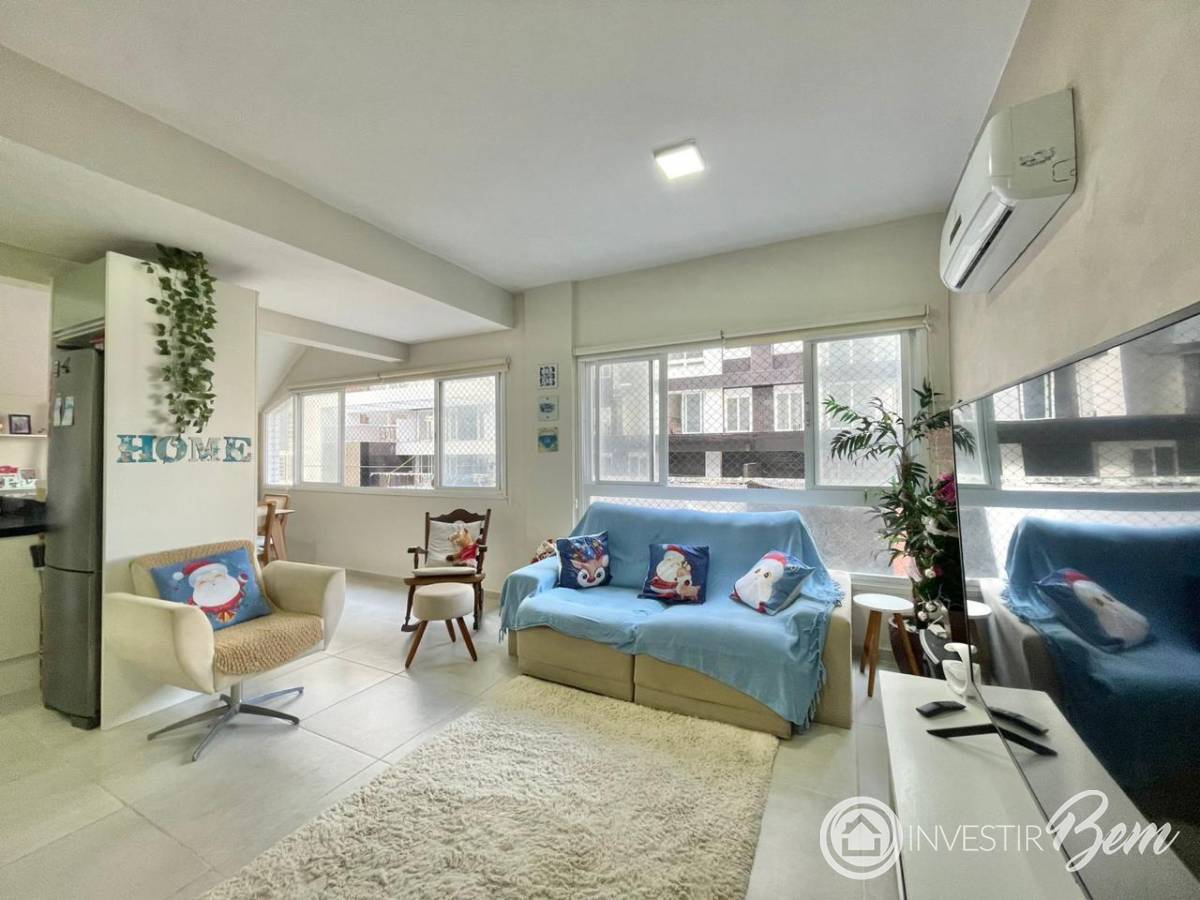 Apartamento amplo de frente composto por 2 dormitorios sendo 1 suite, banheiro social, totalmente mobiliado e equipado prontopara uso, amplo living muito bem distribuido, sala de estar, sala de jantar, cozinha em conceito aberto, terraço privativo amplo para maior conforto da sua familia, muito bem iluminado e ventilado naturalmente, juntco com 1 box terreo de facil acesso. Edificio de alto padrao construtivo, hall de entrada decorado, elevador, zeladoria permanente o ano inteiro, ficando localizado no bairro zona nova, apenas 1 quadra do mar.