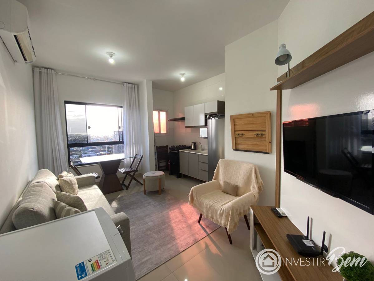 Lindo apartamento de 01 dormitório, bem iluminado e arejado, living de estar e jantar com churrasqueira, banho social, piso porcelanato polido, rebaixo em gesso, bem mobiliado. Edifício com hall decorado, 02 elevadores, piscina, salão de festas.