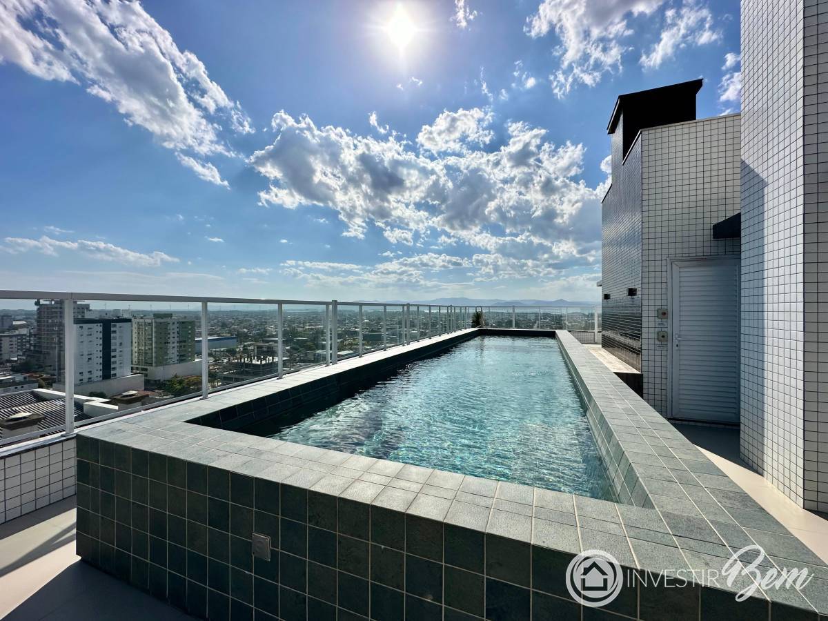 NOVIDADE À VENDA APARTAMENTO AMPLO 02 DORMITÓRIOS, JUNTO A PRAÇA ISRAELITA. 2 dormitórios (1 suíte); ?Banheiro social; novo, ?Living estar e jantar, ?Cozinha americana com churrasqueira, ?Sacada de frente, ?Espera para Split, Esquadrias em PVC, Água quente/Gás central, vaga de garagem, com 95, 58m² de área Apto; e com?14, 65m² de área Box, Edifício de esquina, Rooftop com piscina e salão de festas, 02 elevadores, a 3 quadras da Beira Mar e junto a Praça Israelita. Hall decorado, fachada revestida e plaquetas.