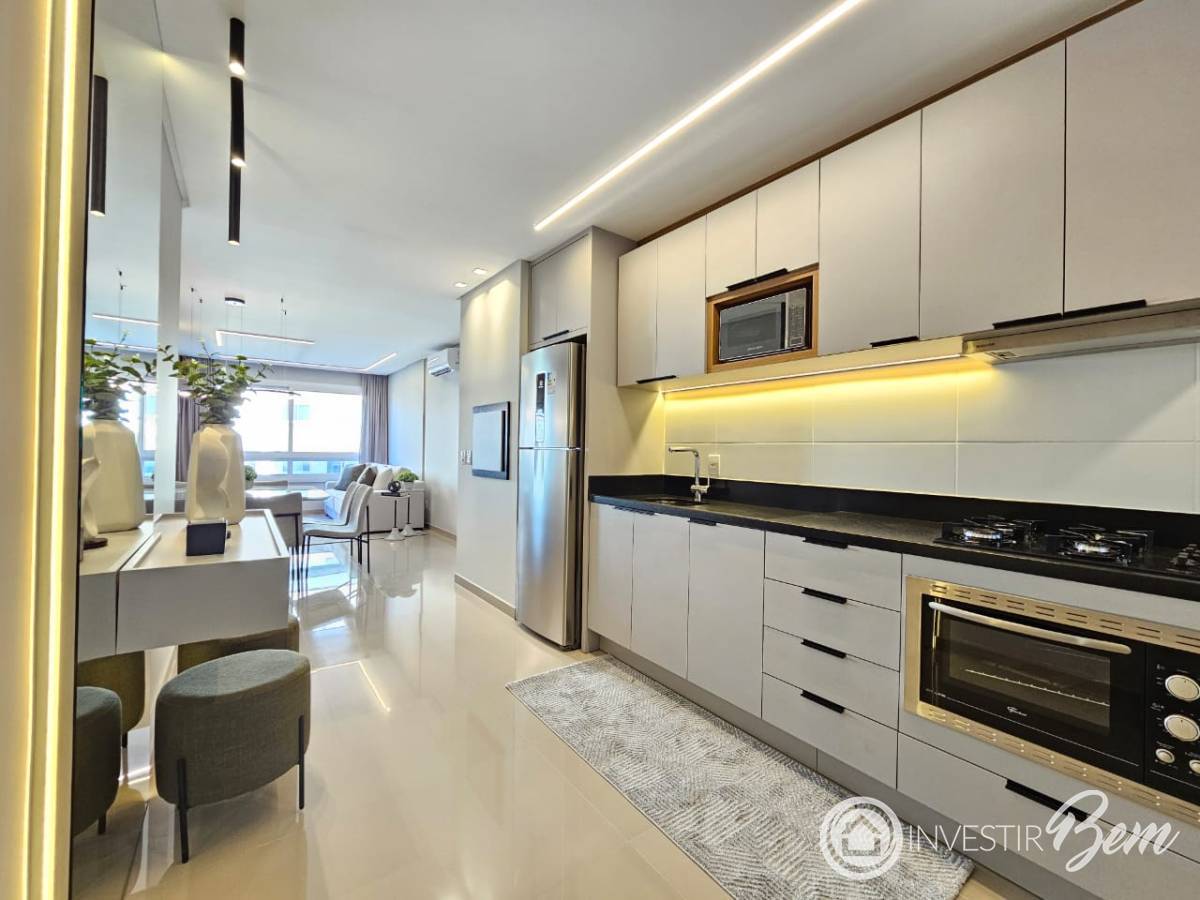 Apartamento de frente, com vista para o mar e todo o conforto que você procura. Composto por 2 dormitório, 1 suite e banheiro social, sala de estar e jantar integradas e uma cozinha moderna com churrasqueira. Conta ainda com área de serviço separada e um excelente box térreo. Totalmente mobiliado e pronto para morar, este imóvel fica em um edifício novo, com infraestrutura completa no Rooftop: piscina com vista panorâmica, salão de festas e muito mais para você aproveitar momentos únicos. Um espaço pensado para quem valoriza praticidade, conforto e qualidade de vida, a poucos passos do mar.