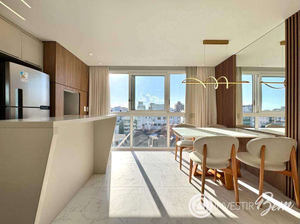 No bairro Zona Nova, veja este lindo apartamento composto por 2 dormitórios sendo uma suíte, banheiro social, sala de estar e jantar, sacada integrada com churrasqueira de frente para a rua, mobiliado e decorado, iluminado, com rebaixo em gesso, espera para split, esquadria em PVC. Em um prédio com altíssimo padrão de acabamento, infraestrutura, 100% revestido em plaquetas. Não perca esta oportunidade, solicite maiores informações e agende uma visita