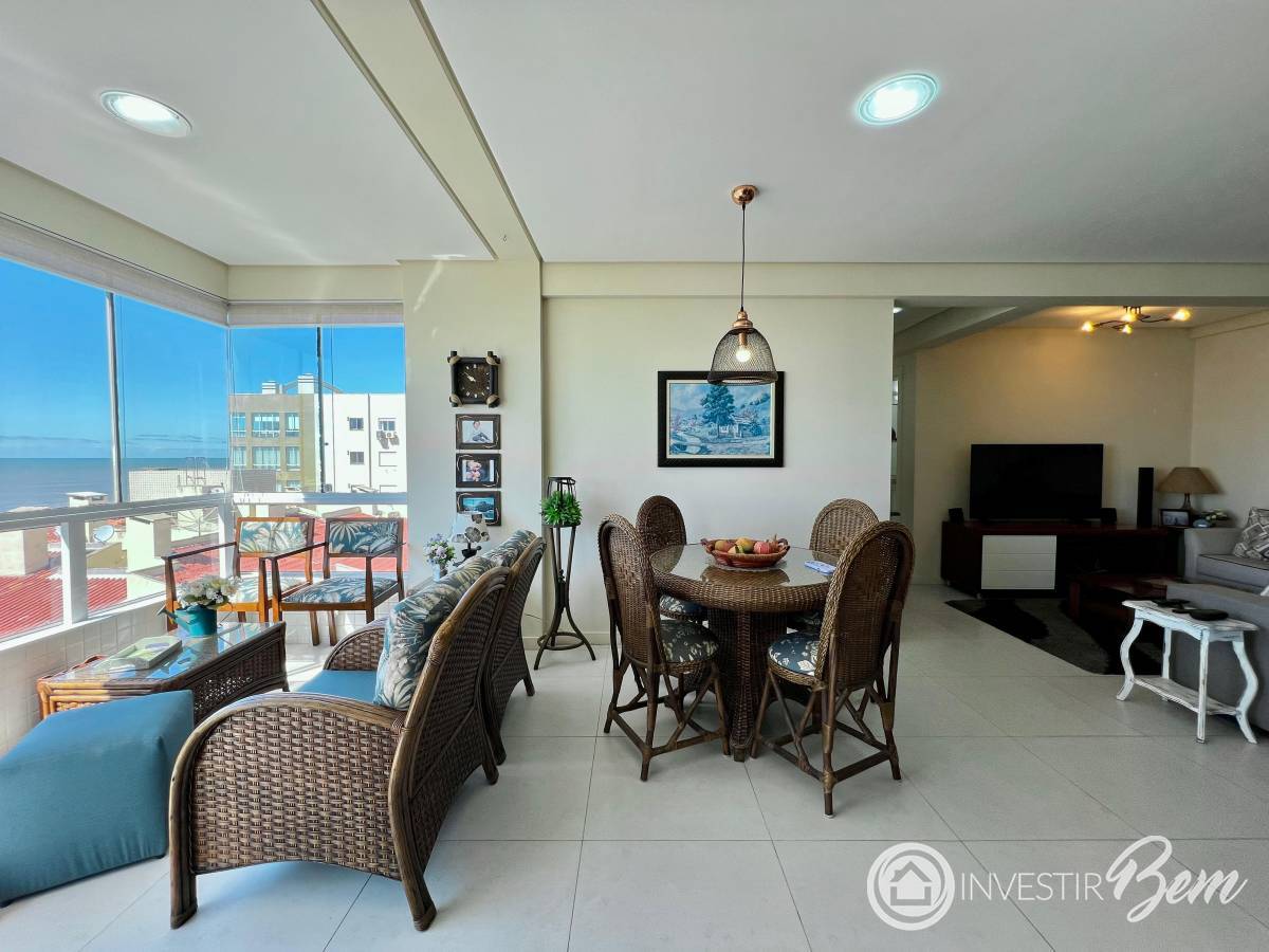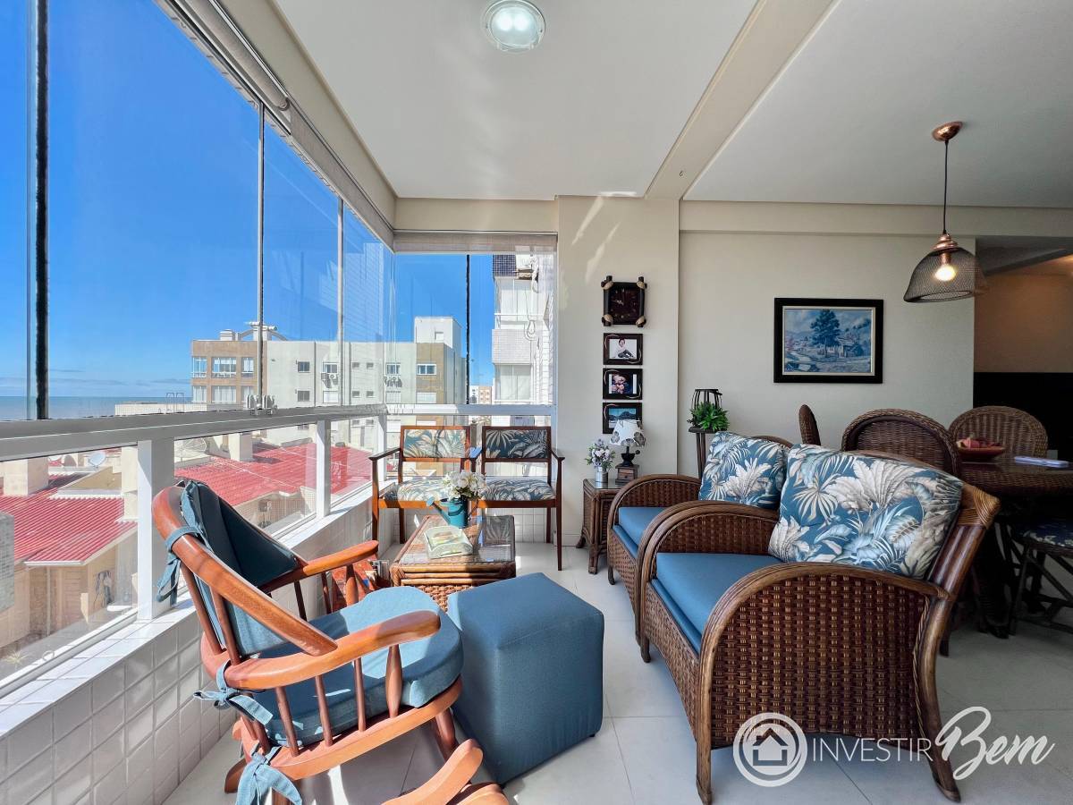 BAIRRO ZONA NOVA! Apartamento de 02 dormitórios, sendo uma suíte + banheiro social. Amplo imóvel, living integrado, sala de estar, sala de jantar e sacada integrada fechada com churrasqueira, cozinha americana e área de serviço separada. Apartamento com Vista definitiva para o Mar, posição solar Leste/ Norte, andar alto, box privativo, duplo com depósito, totalmente mobiliado e equipado, espera para split, água quente e gás central. Prédio revestido em plaquetas, hall de entrada mobiliado, 02 elevadores, zeladoria permanente, água quente e gás central. Localizado no bairro Zona Nova, ao lado da Flavio Boianovski, À 01 quadra do mar!