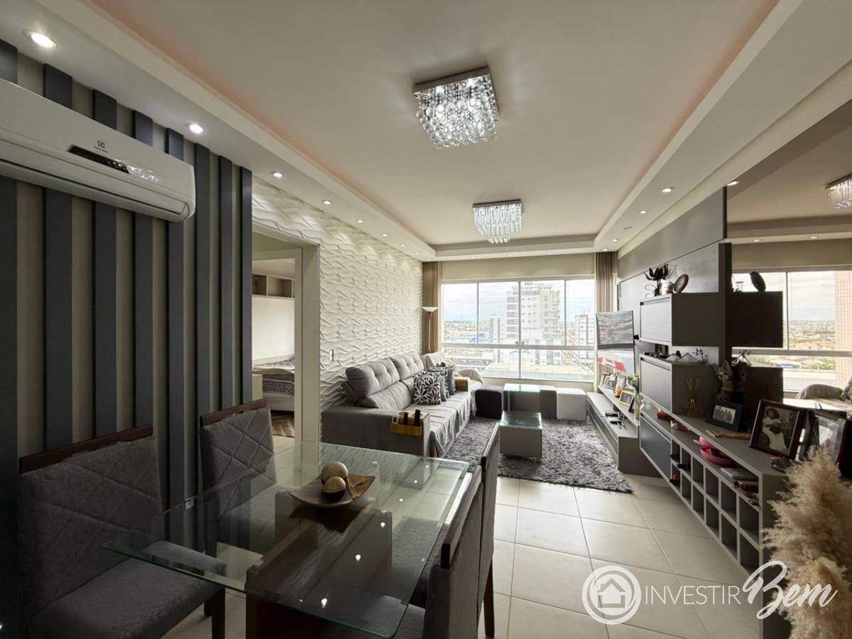 Excelente apartamento mobiliado e decorado, com vista liberada, perfeito para quem busca conforto e praticidade em um só lugar! Composto por 02 dormitórios (sendo 01 suíte), o imóvel conta com living integrado em 2 ambientes, sala de estar e jantar, cozinha americana com churrasqueira, banheiro social e área de serviço. Possui ar condicionado instalado, junker, gás central, hidrômetro individual, piso frio, rebaixo em gesso e iluminação em LED, garantindo economia e um acabamento moderno. O edifício oferece elevador e localização excelente, ideal para morar com qualidade de vida ou investir com segurança. Pronto para entrar e morar!