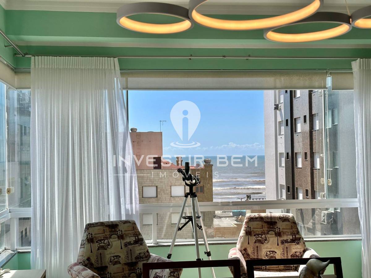 Ótimo apartamento, mobiliado e decorado, 3 dormitórios, 1 suite, vista para o mar, agua quente central, medidores individuais de agua e gâs, 89m2 de área privativa, vagade garagem.