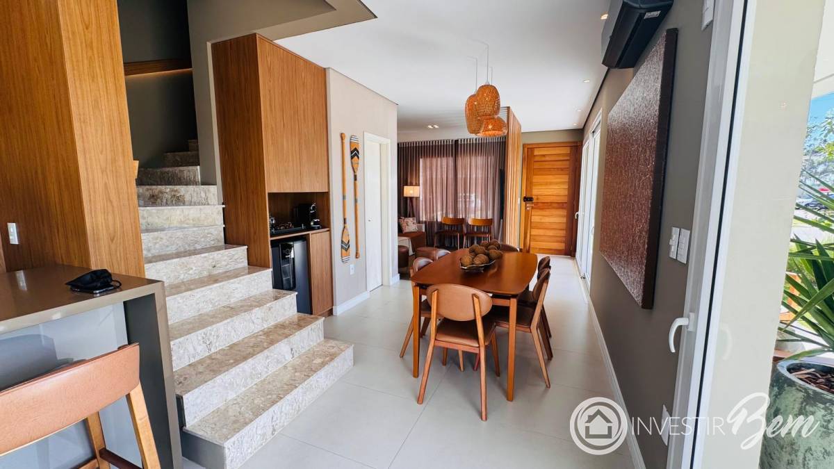 Sobrado de Esquina á venda em condomínio fechado a Beira Lago. Em condomínio fechado com estrutura completa 04 dormitórios (2 suíte), Totalmente mobiliado, Climatizado, Juncker instalado, Cozinha equipada com todos os eletrodomésticos, e com 148m², Frente norte, Pronto para uso imediato, Ótimas condições de pagamento: Entrada 50%, mais prazo curto, Estuda receber veículo, Estuda receber apartamento de 2 dormitórios em Capão.