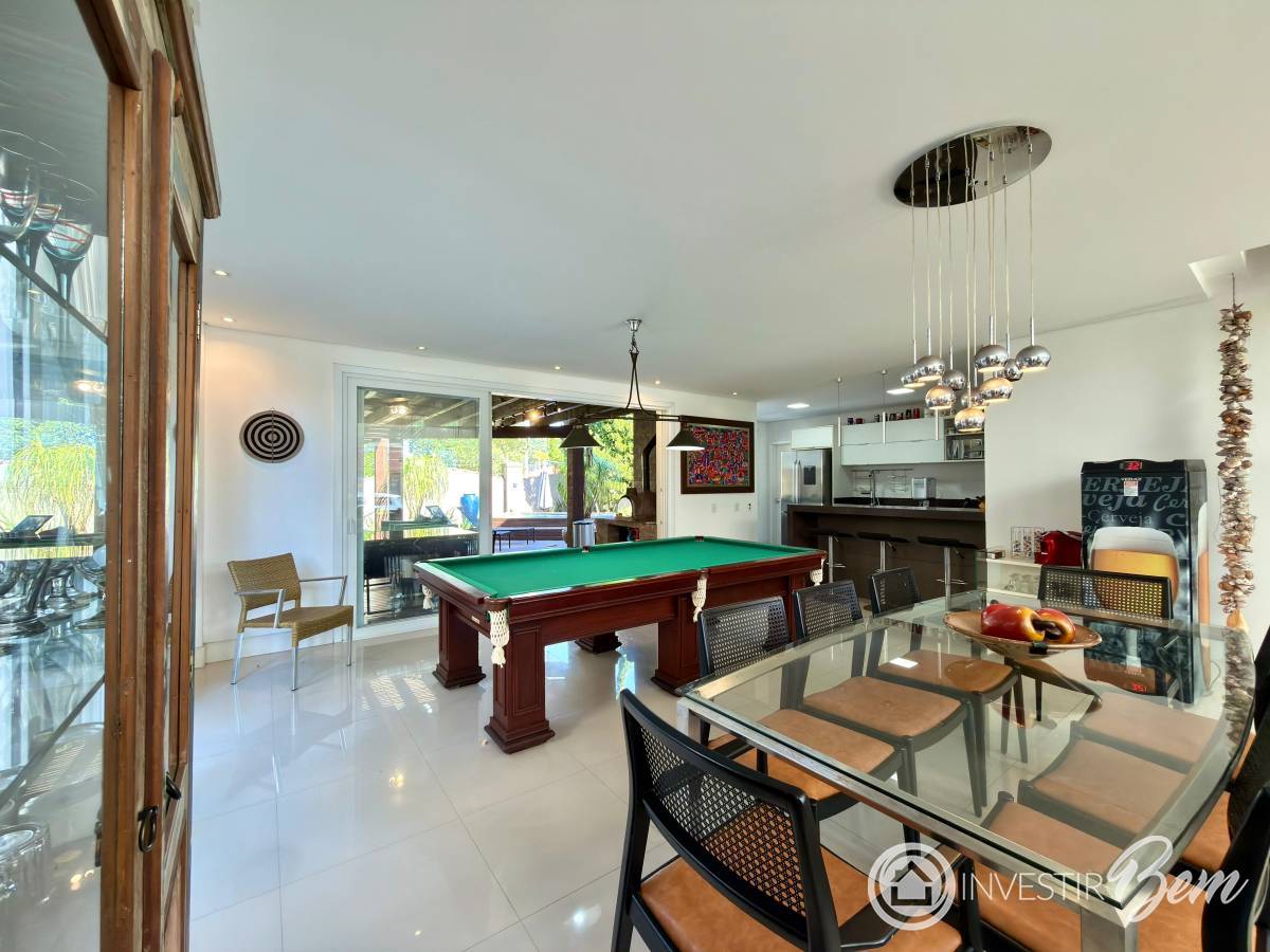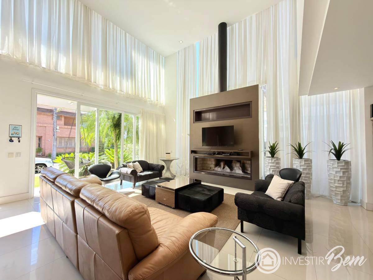 Imponente casa com 330m² de área construída, projetada para oferecer conforto, sofisticação e excelente aproveitamento dos espaços. O projeto valoriza a ventilação cruzada e a iluminação natural em todos os ambientes, com um living imponente de pé direito duplo e lareira, que integra perfeitamente os espaços sociais. A residência conta com 5 suítes, sendo uma master com closet e hidromassagem, além de lavabo e climatização instalada em todas as suítes. A cozinha gourmet é um dos grandes destaques, equipada com churrasqueira giratória em aço inox com fogareiro e fogão a lenha, conectada ao espaço de jogos e convivência, ideal para receber amigos e família. Na área externa, um elegante deck com piscina, paisagismo cuidadosamente planejado e muros revestidos em porcelanato perfilado elevam ainda mais o padrão do imóvel. Conta também com área de serviço funcional, móveis projetados, aberturas em PVC branco automatizadas com telas mosquiteiro e garagem para até 4 carros, sendo duas vagas cobertas. Uma casa completa, pensada nos mínimos detalhes para quem busca exclusividade, conforto e alto padrão construtivo.