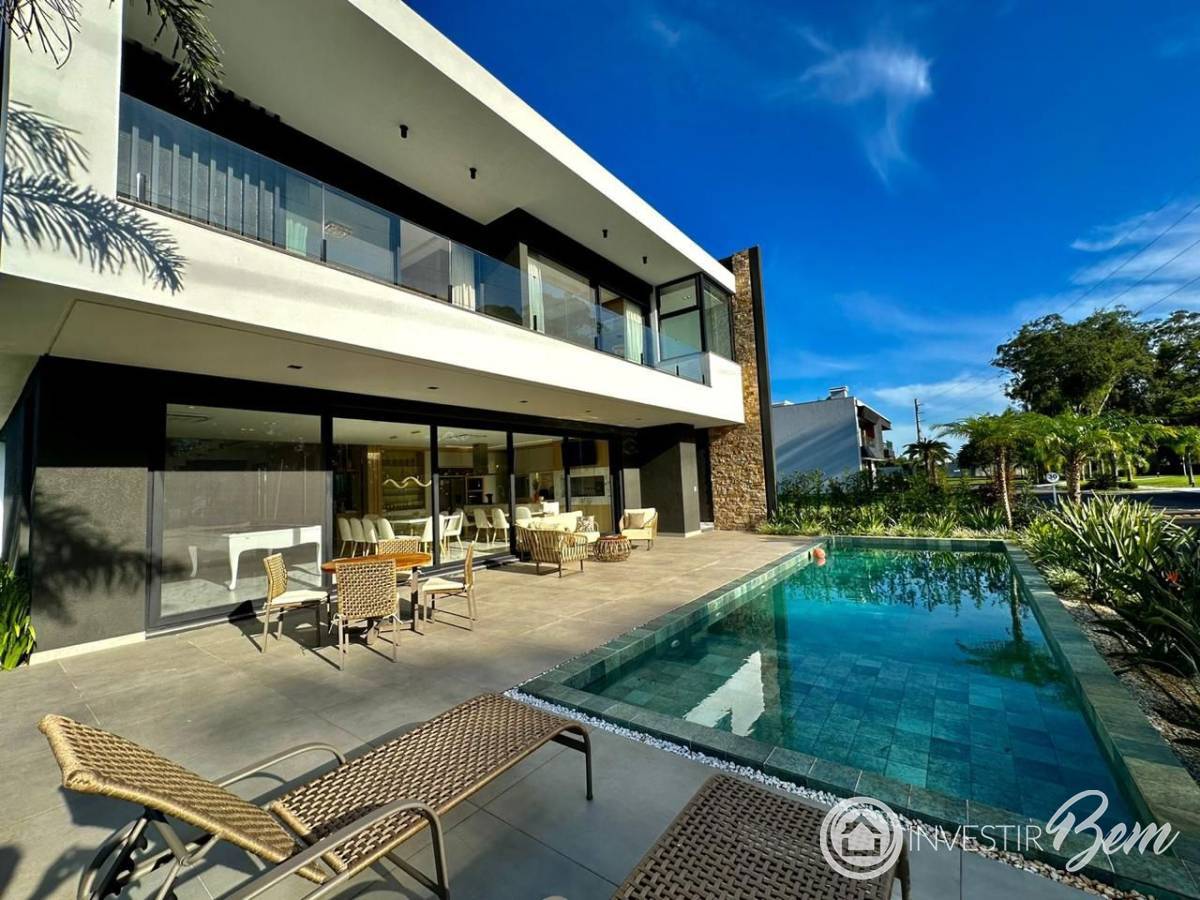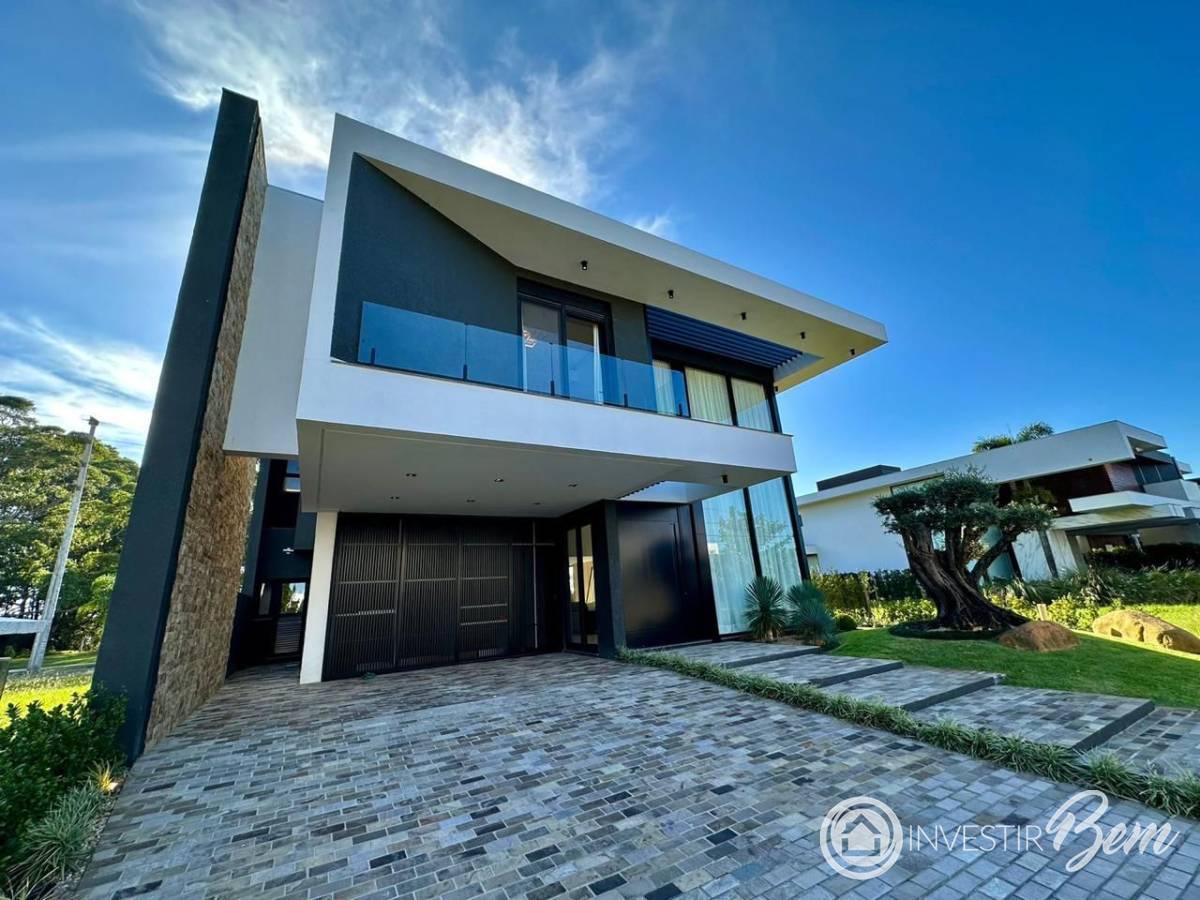 SOBRADO DE LUXO DE ALTO PADRÃO EM CONDOMINIO FECHADO EM CAPÃO DA CANOA-RS. Composto de 05 dormitórios sendo 05 Suítes; FINAMENTE MOBILIADO E DECORADO, Garagem para 02 Carros; Amplo Living em dois ambientes, Área de Serviço; Lavabo; Lavanderia; Cozinha Americana; Espaço Gourmet; Churrasqueira; Piscina; Elevador; Vista para a Lagoa. Casa pronta para uso, padrão construtivo classe AAA, fachada moderna, luxo e conforte serve para sua família. Entre em contato para mais informações.