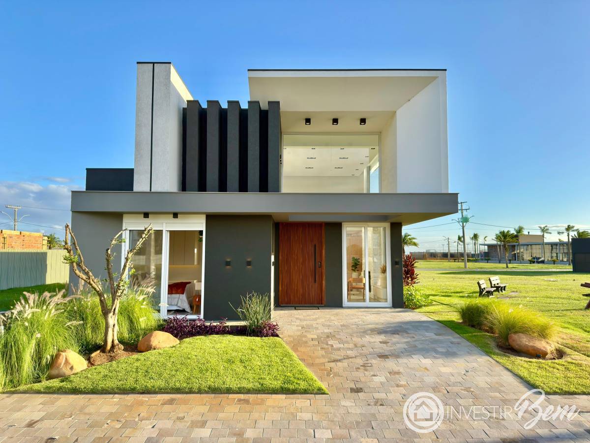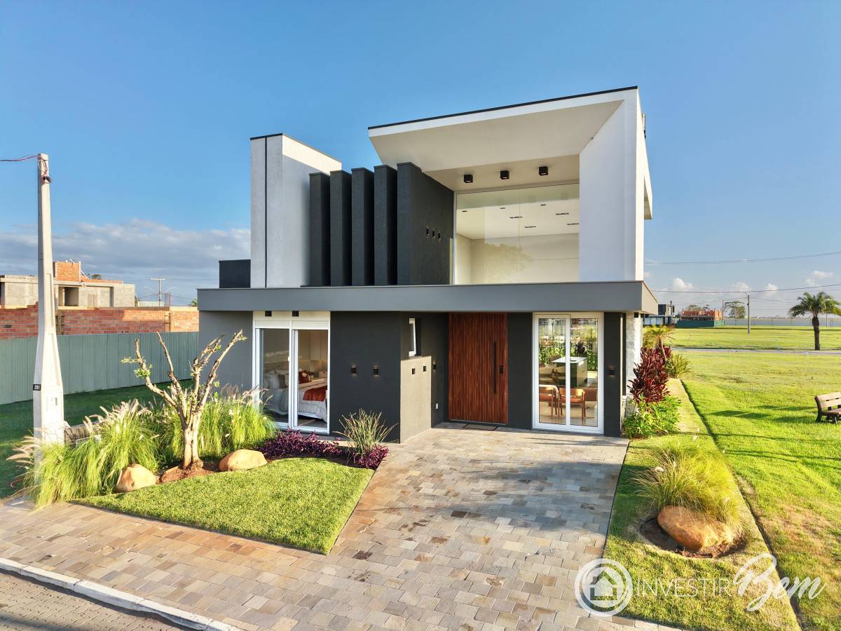 Esta residência foi pensada para oferecer conforto, sofisticação e praticidade em cada detalhe. Equipada com móveis fixos e granitos, conta com iluminação interna e externa pronta, além de torneiras e chuveiros já instalados. Está mobiliada e decorada, pronta para morar. DESCRIÇÃO DO IMÓVEL Casa térrea com 03 suítes + lavabo, distribuída em 150m² de área construída. O destaque fica para o living com 53m² em três ambientes, proporcionando integração e amplitude, além da sala com pé-direito duplo de 5, 80m de altura, que valoriza ainda mais o projeto arquitetônico. A cozinha estilo americana integra-se perfeitamente à área social. Possui lareira a gás no living, ideal para momentos aconchegantes. Nos acabamentos, a qualidade é evidente: Esquadrias internas e externas em PVC Piso porcelanato 1, 20x1, 20 Azulejos nos banheiros 60x1, 20 Fachada com revestimento ripado Acabamentos em pedras naturais A área externa conta com jardinagem, irrigação e iluminação já instaladas. Localização privilegiada dentro do condomínio, junto ao clube e ao lado de área verde.